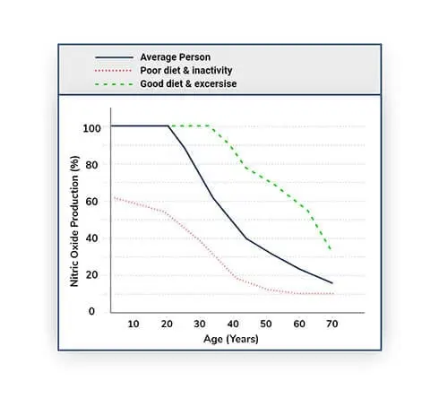 That’s why a person can eat a healthy diet, exercise, and still not stop the decline in nitric oxide as they age.
